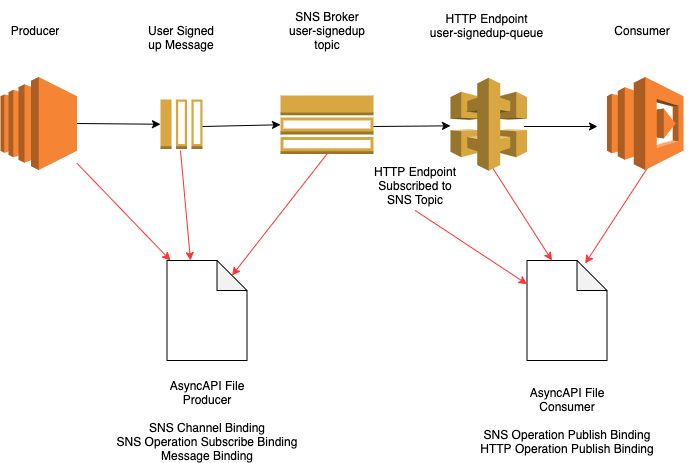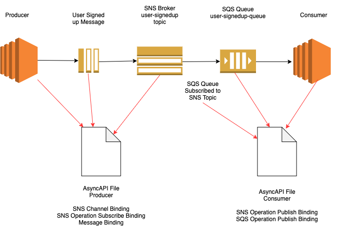 13 rawMessageDelivery: true We are consuming an SNS channel, using an SQS queue. A separate file specifies the producer, and has the SNS Bindings for the channel. For this reason we do not repeat the SNS binding information for the channel here, to avoid duplicated definitions diverging. Instead we just define the publish Operation Binding.